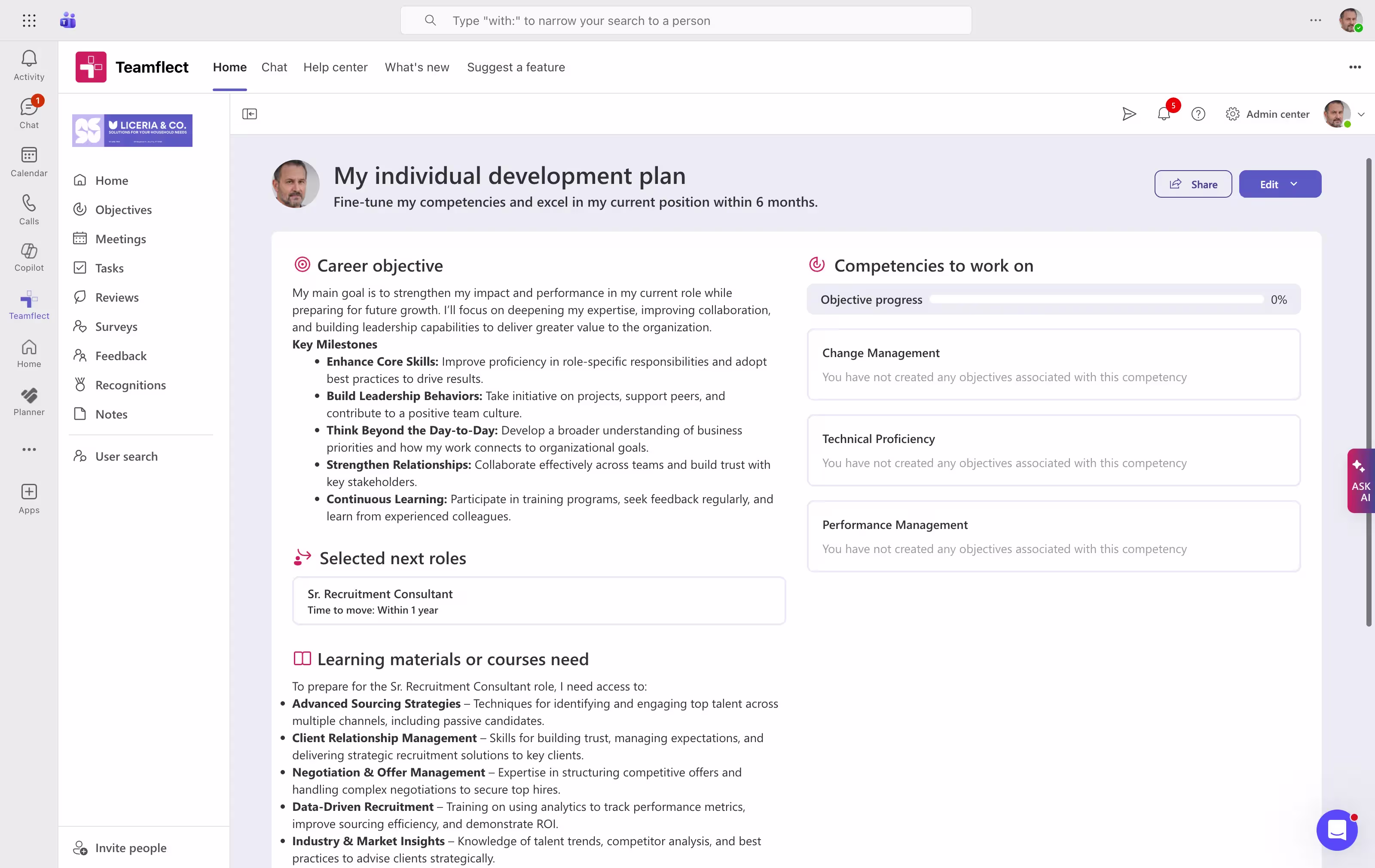 Teamflect is an all-in-one employee development software built inside Microsoft Teams, designed to help employees and managers set, track, and align professional development goals with team and company objectives.